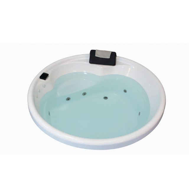 This premium round Jacuzzi bathtub is crafted from durable fiberglass (FRP) with a sturdy mild-steel half-covered frame, designed for two users. Equipped with six high-pressure hydro massage jets powered by a 1 HP pump, it offers an energizing and relaxing spa experience. The tub includes LED lighting, pneumatic push-button controls, and dual headrests, making it ideal for homes, villas, hotels, and wellness spaces seeking compact luxury and comfort.